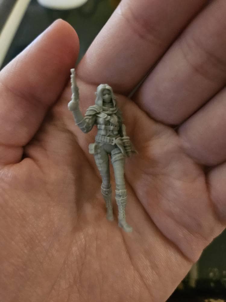 Draped in tactical leather gear, armed with a finely crafted pistol, and poised with confident precision, this miniature is perfect for players, Dungeon Masters, and collectors looking for a steampunk or western-inspired adventurer. Whether she's a renegade lawbringer, outlaw mercenary, or elite arcane duelist, she’s ready to carve her legend in the wild unknown.