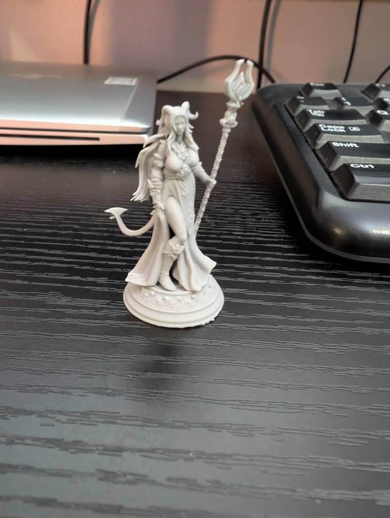 This stunning Tiefling Cleric or Warlock miniature is perfect for ttrpg players, game masters, and collectors. With her intricate robes, elegant infernal staff, and commanding presence, she is ideal for a devout priestess of the Nine Hells or a charismatic warlock bound to a dark patron.