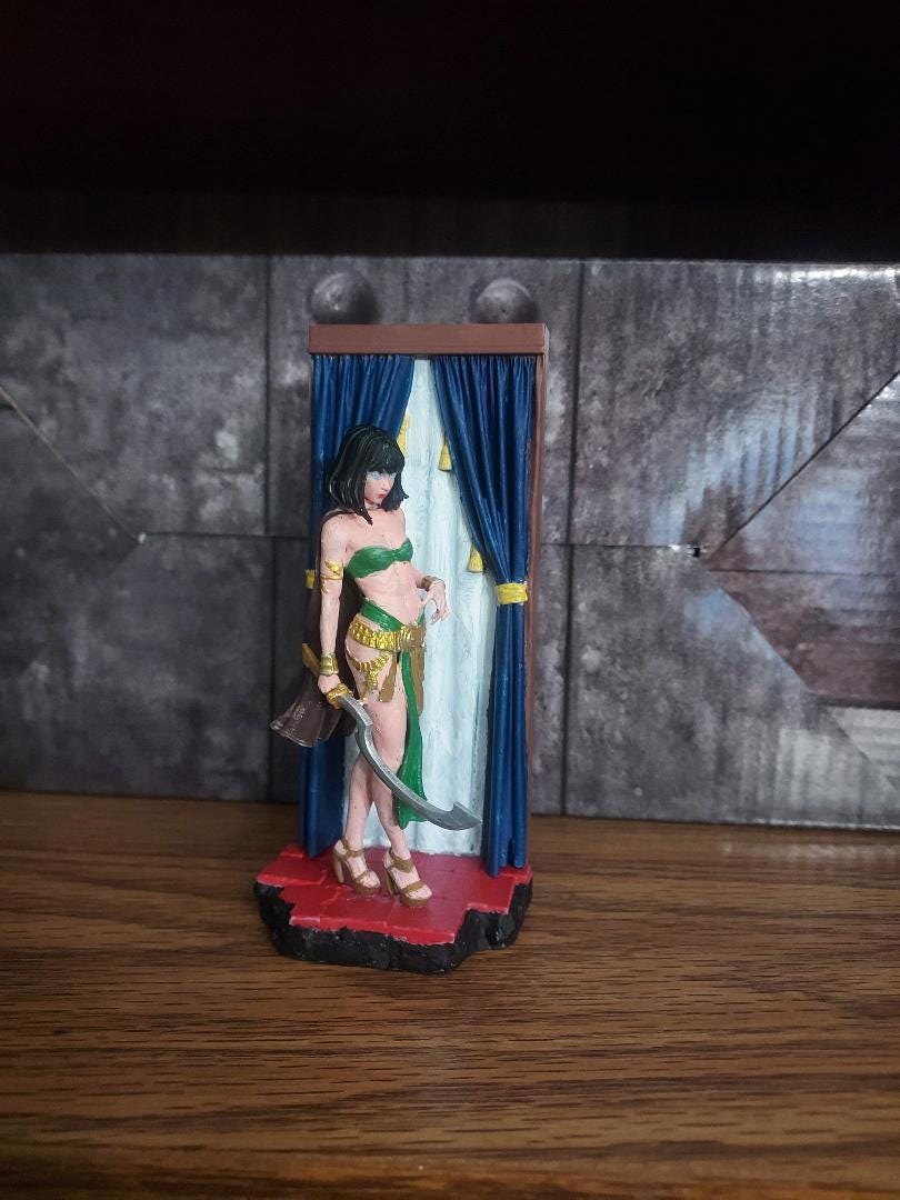 A curtain draws back as she steps forward—silent, swift, and striking. This elegant assassin woman is as dangerous as she is composed, a perfect centerpiece for any fantasy-themed diorama or artistic collection. With her poised stance and finely sculpted garments, this model captures the tension of a moment just before the blade falls.
