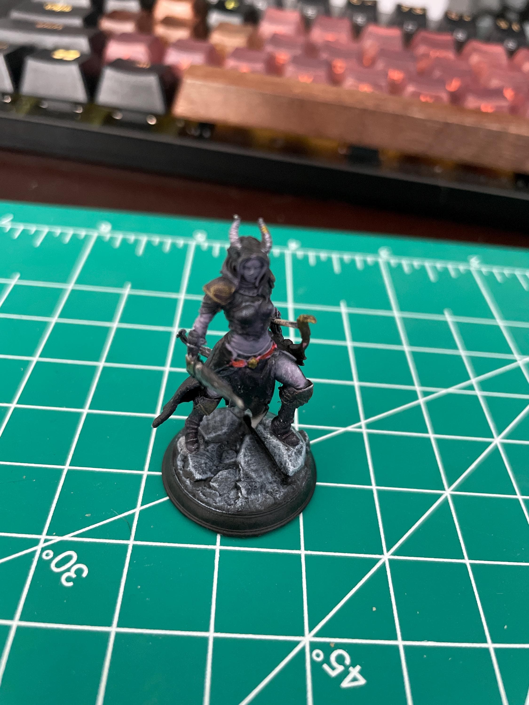 Created by DM Stash, this tiefling ranger miniature is packed with character. Her gear is lived-in and layered, her posture agile and battle-ready. Horns curl from her brow. Her tail sways behind her. She’s equal parts grace and grit—made for the darkest woods and the coldest hunts.